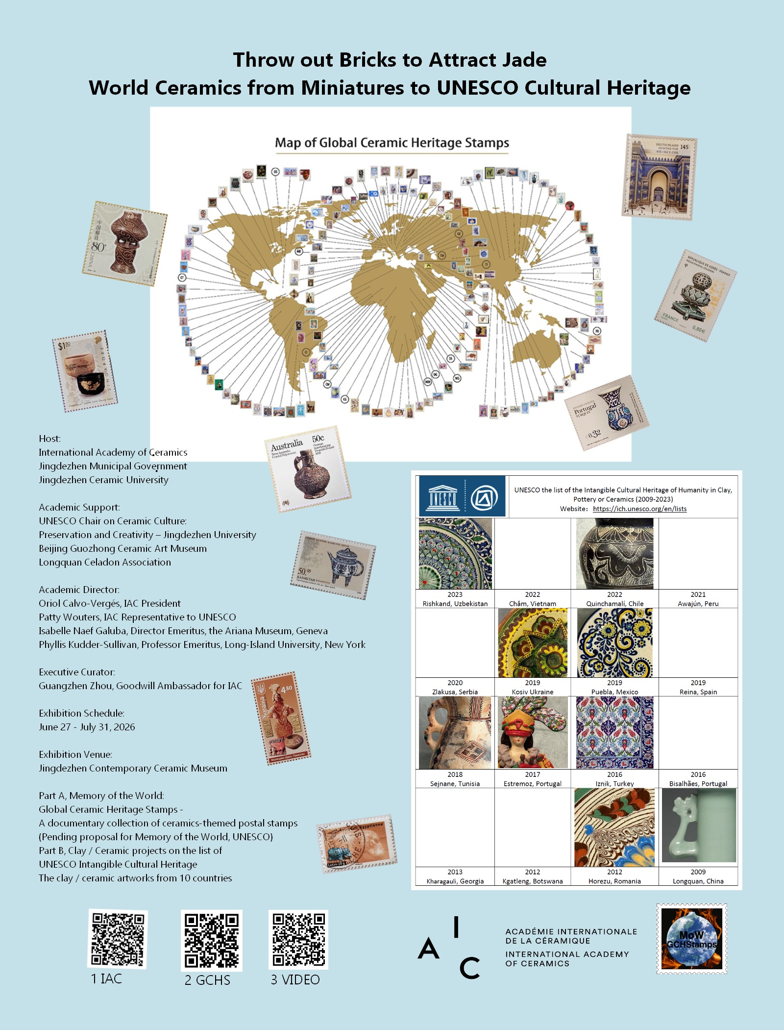 This exhibition is a celebration of ceramic heritage on a global scale, uniting two distinct yet complementary forms of cultural documentation. At its heart is an extraordinary philatelic project by a diverse group of IAC members: a proposed UNESCO Memory of the World collection titled “Global Ceramic Heritage Stamps.” This archive of thousands stamps from more than 180 countries and regions tells the story of ceramics through the miniature art of the postage stamp.